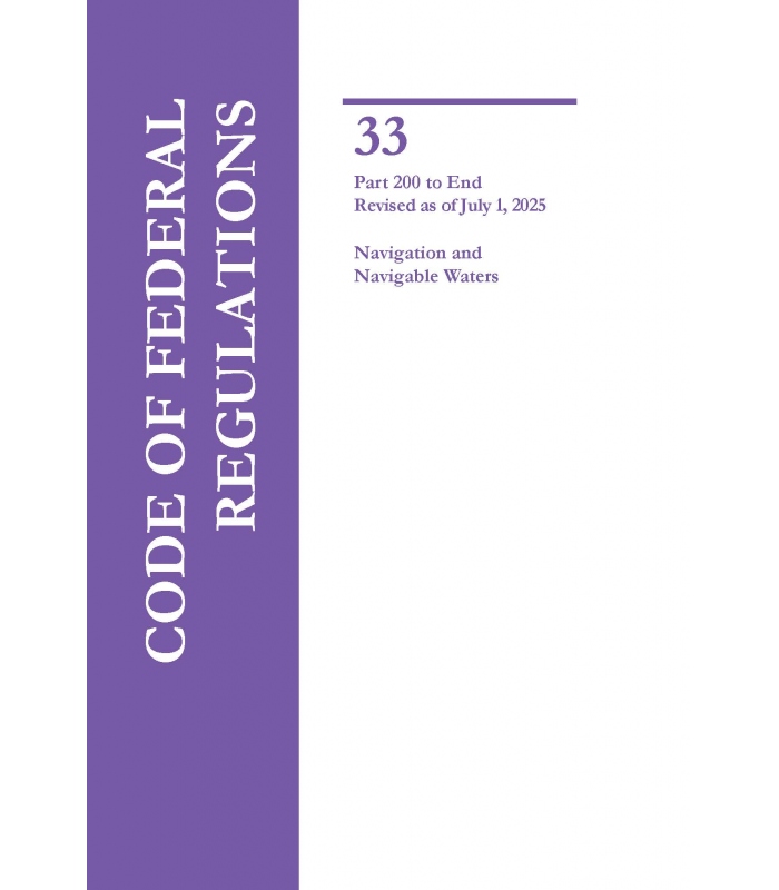 Title 33—NAVIGATION AND NAVIGABLE WATERS is composed of three volumes. The contents of these volumes represent all current regulations codified under this title of the CFR as of July 1, 2025. The first and second volumes, parts 1–124 and 125–199, contain current regulations of the Coast Guard, Department of Homeland Security. The third volume, part 200 to end, contains current regulations of the Corps of Engineers, Department of the Army, and the Saint Lawrence Seaway Development Corporation, Department of Transportation.