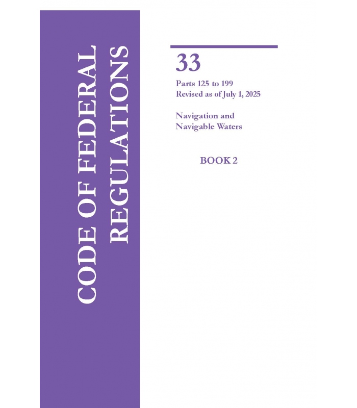 Title 33—NAVIGATION AND NAVIGABLE WATERS is composed of three volumes. The contents of these volumes represent all current regulations codified under this title of the CFR as of July 1, 2025. The first and second volumes, parts 1–124 and 125–199, contain current regulations of the Coast Guard, Department of Homeland Security. The third volume, part 200 to end, contains current regulations of the Corps of Engineers, Department of the Army, and the Saint Lawrence Seaway Development Corporation, Department of Transportation.
