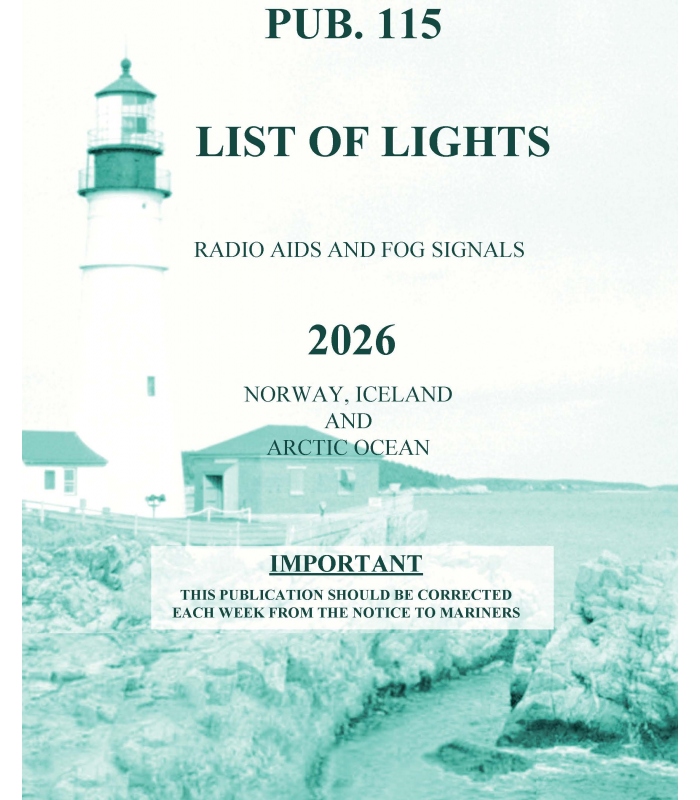 The 2026 edition of Pub. 115, List of Lights, Radio Aids and Fog Signals for the Norway, Iceland and the Arctic Ocean, cancels the previous edition of Pub. 115. This edition contains information available to the National Geospatial-Intelligence Agency (NGA) up to 15 February 2026.