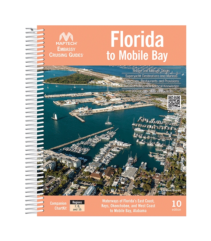 Complete coverage of Florida’s East Coast, Gulf Coast to Mobile, AL, the Florida Keys, the Okeechobee Waterway. Features detailed navigation advice, superyacht facilities, aerial photos, destination and dining tips, comprehensive bridge tables, GPS waypoints and detailed listings for 1,200 marine facilities. 546 pages.